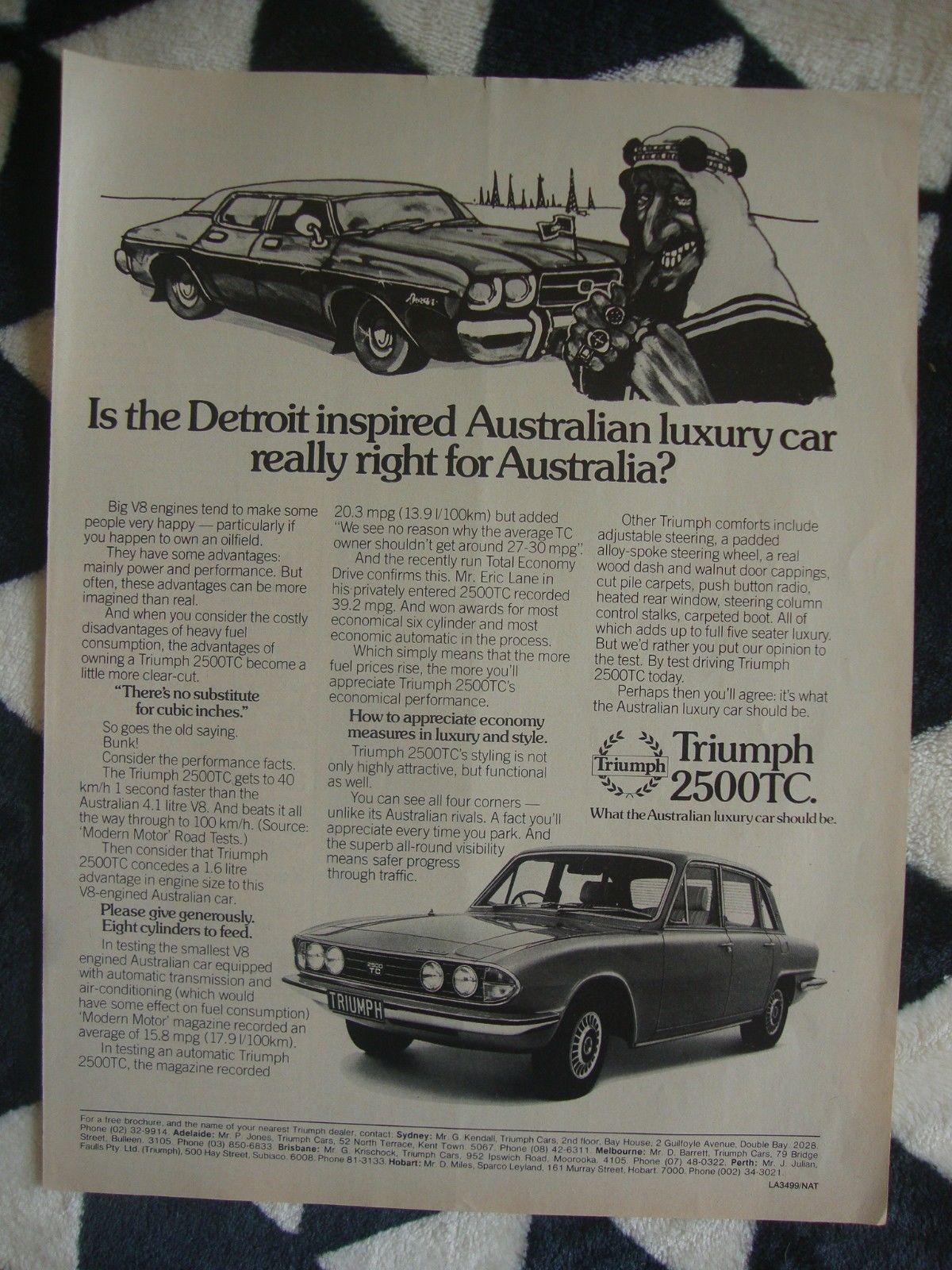 Title (ebay affiliate link): 1976 Triumph 2500 TC Aussie Original Magazine Advertisement 1