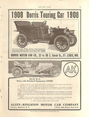 Title (ebay affiliate link): 1908 DORRIS-ALLEN-KINGSTON-STEVENS DURYEA-NATIONAL ORIGINAL VINTAGE CAR AD