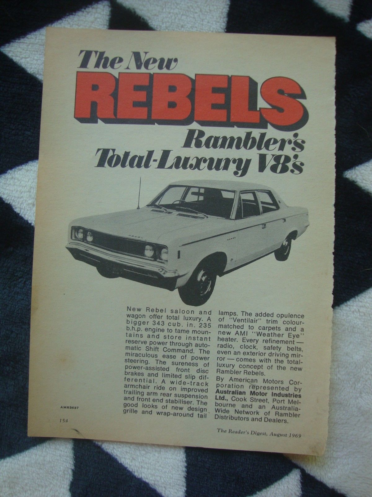 Title (ebay affiliate link): 1969 Rambler Rebel V8 Sedan AMC AMI Aussie Original Magazine Advert
