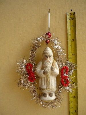 VTG.PAPIER SANTA IN TINSEL ROUND CHRISTMAS TREE ORNAMENT