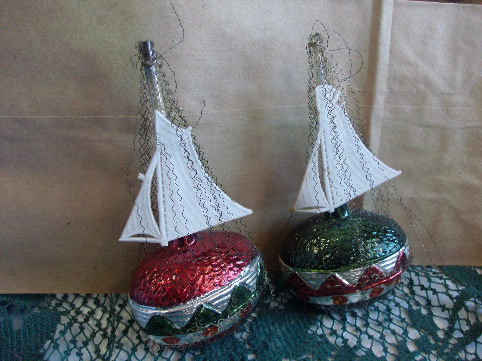 Title (ebay affiliate link): 2 Antique Victorian Wire Wrapped Mercury Glass Ship Ornaments w Sails