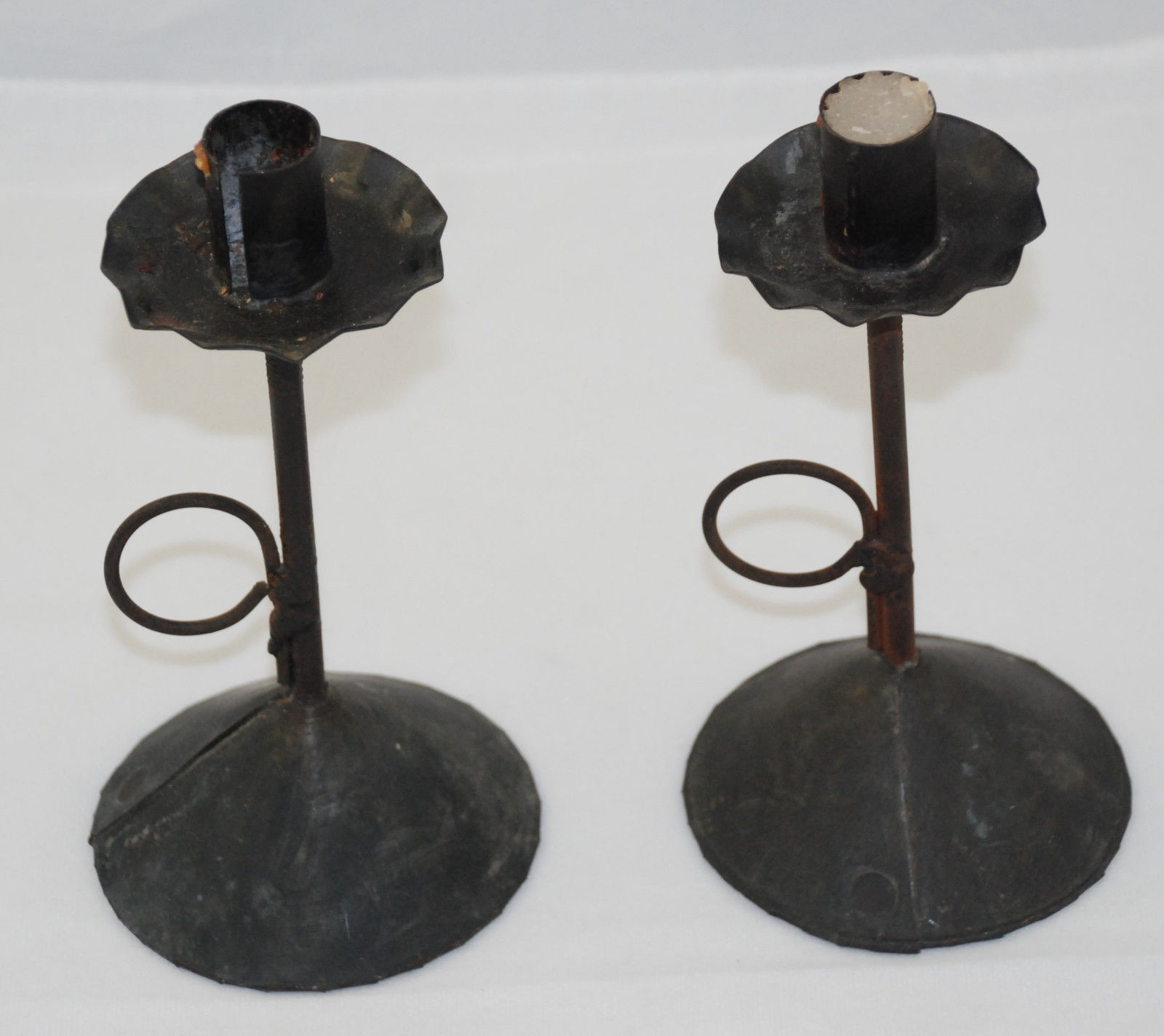 Primitive PAIR of Sand Weighted Candlestick Holders w finger rings