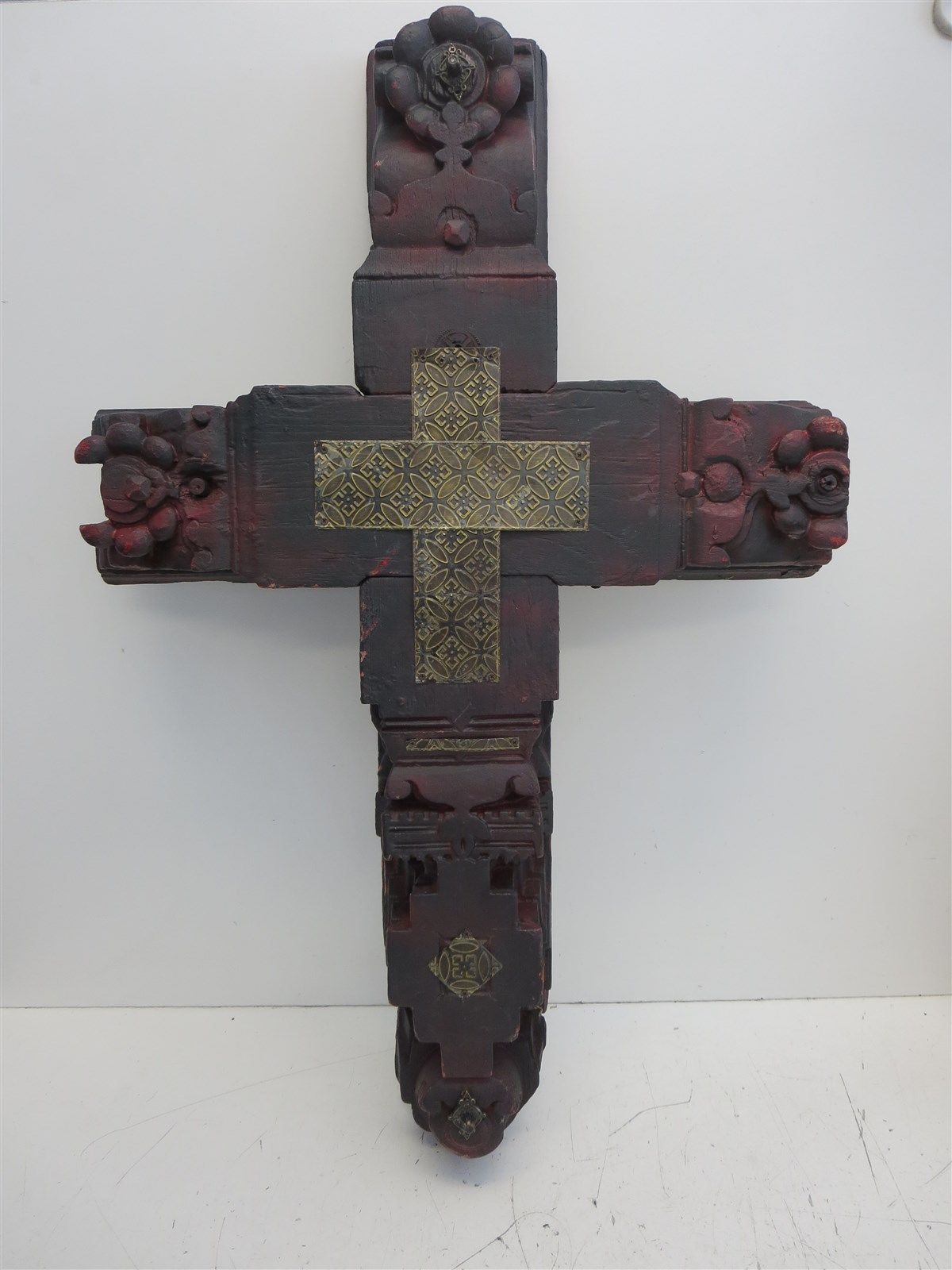 Wall Mount Hand Carved and Painted Wooden Crucifix 14 Lbs, Est. 1920s