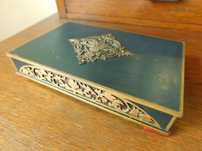Refined Edwardian Card Box Silver & Pierced Brass Mixed Woods ca1920