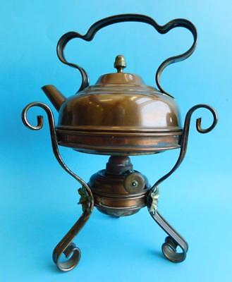 Unusual Small Copper Spirit Kettle Bachelors Teapot Arts & Crafts c1910