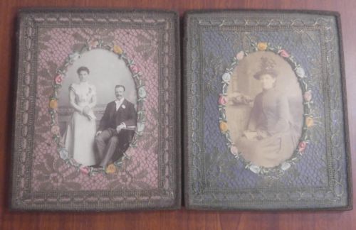 Set of 2 ANTIQUE VICTORIAN ORNATE EASEL STAND UP PICTURE FRAME WITH PICTURE.