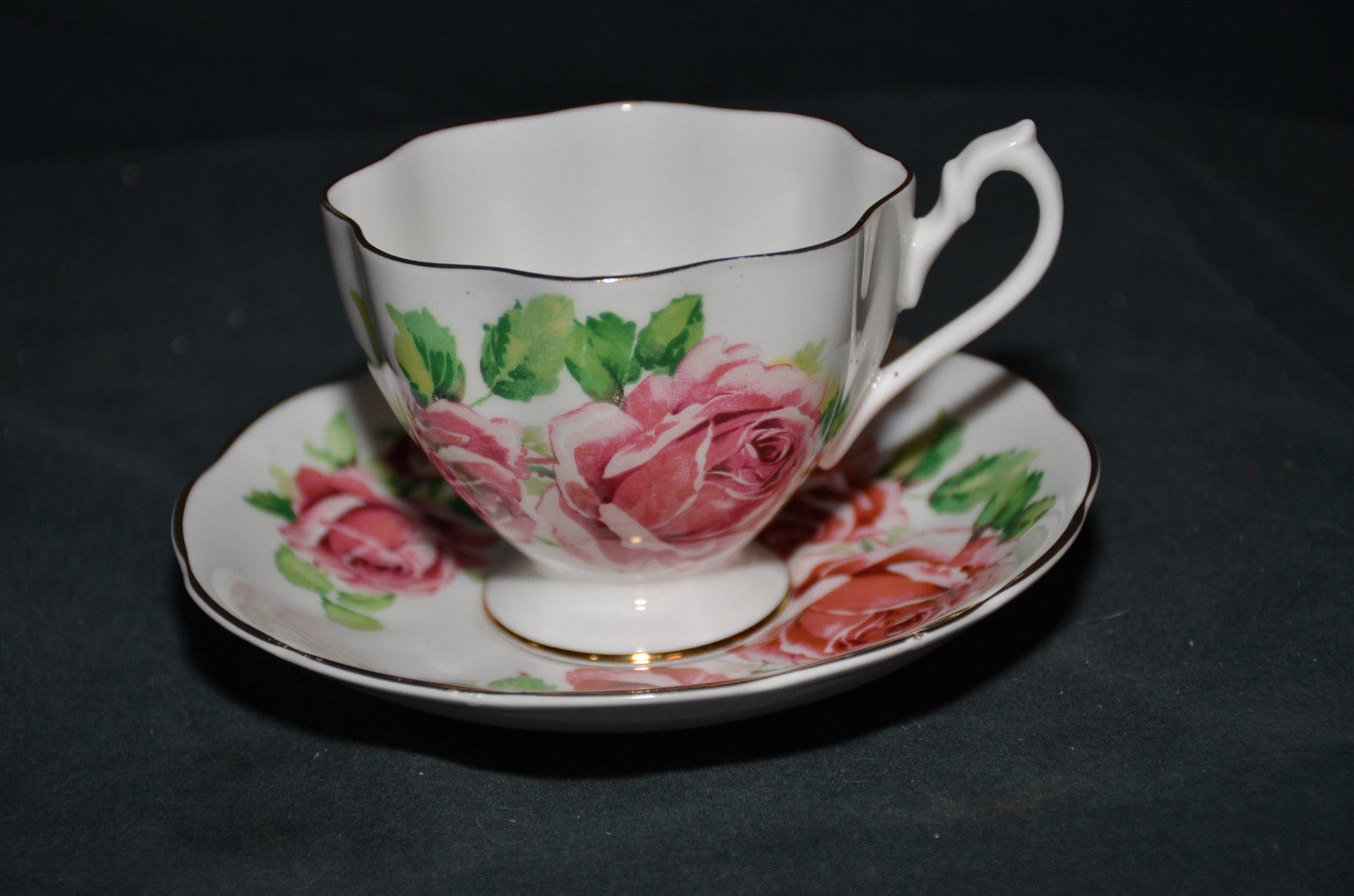 Queen Anne Rose Pattern Porcelain Tea Cup and Saucer Plate
