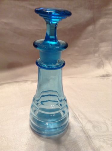 Vintage Aqua Blue Perfume Bottle With Glass Stopper