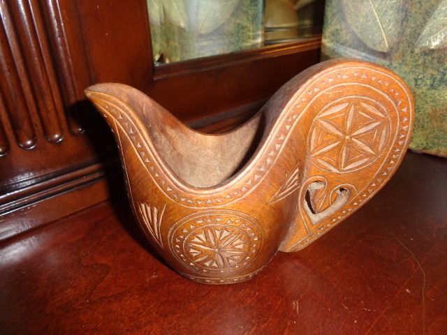 Vintage Hand Carved Teak Wood Creamer Wooden Shepard''s Pitcher Yugoslavia