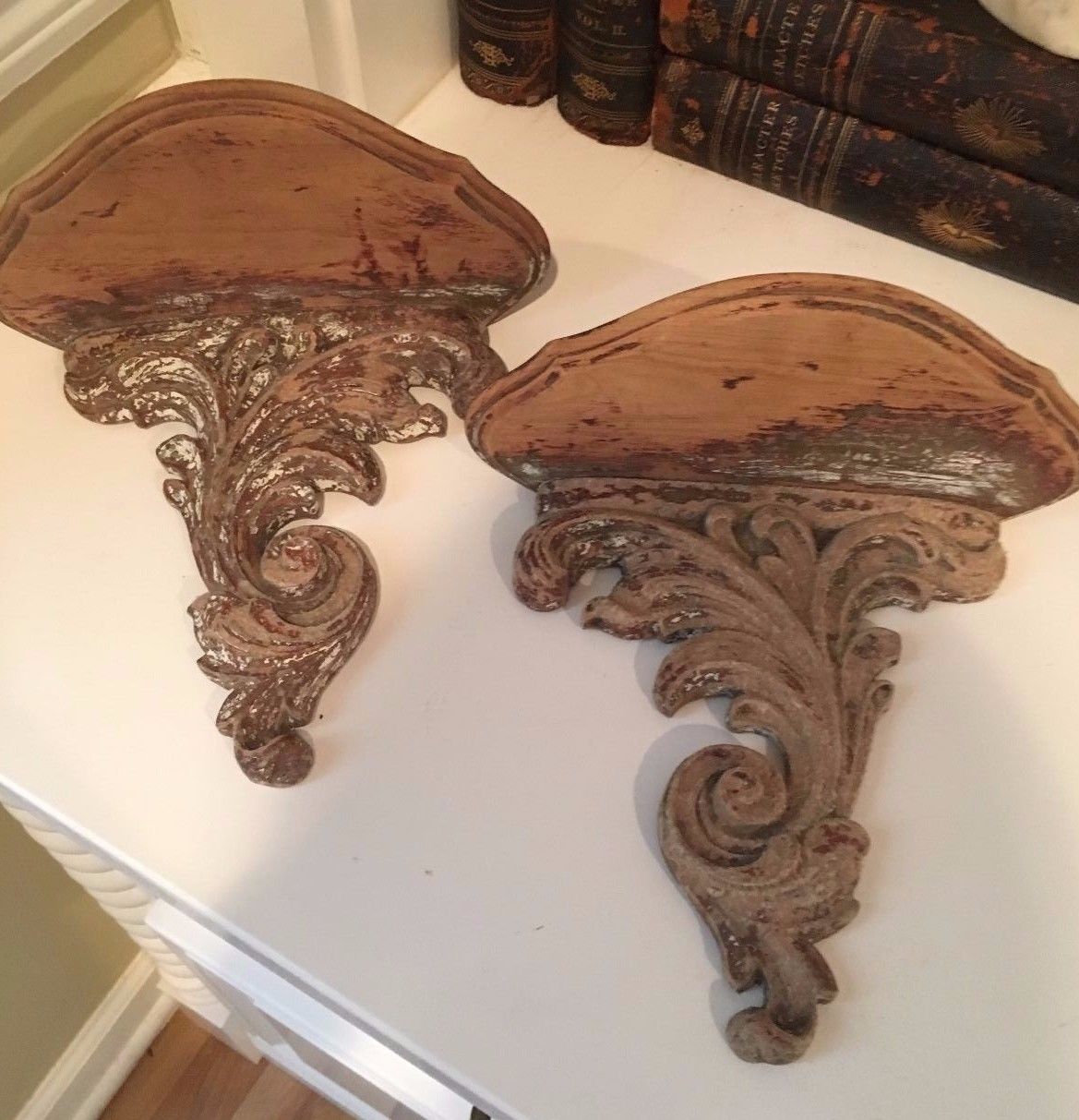 Pair Early Wood Wall Brackets Sconces Shelves Italian Rococo