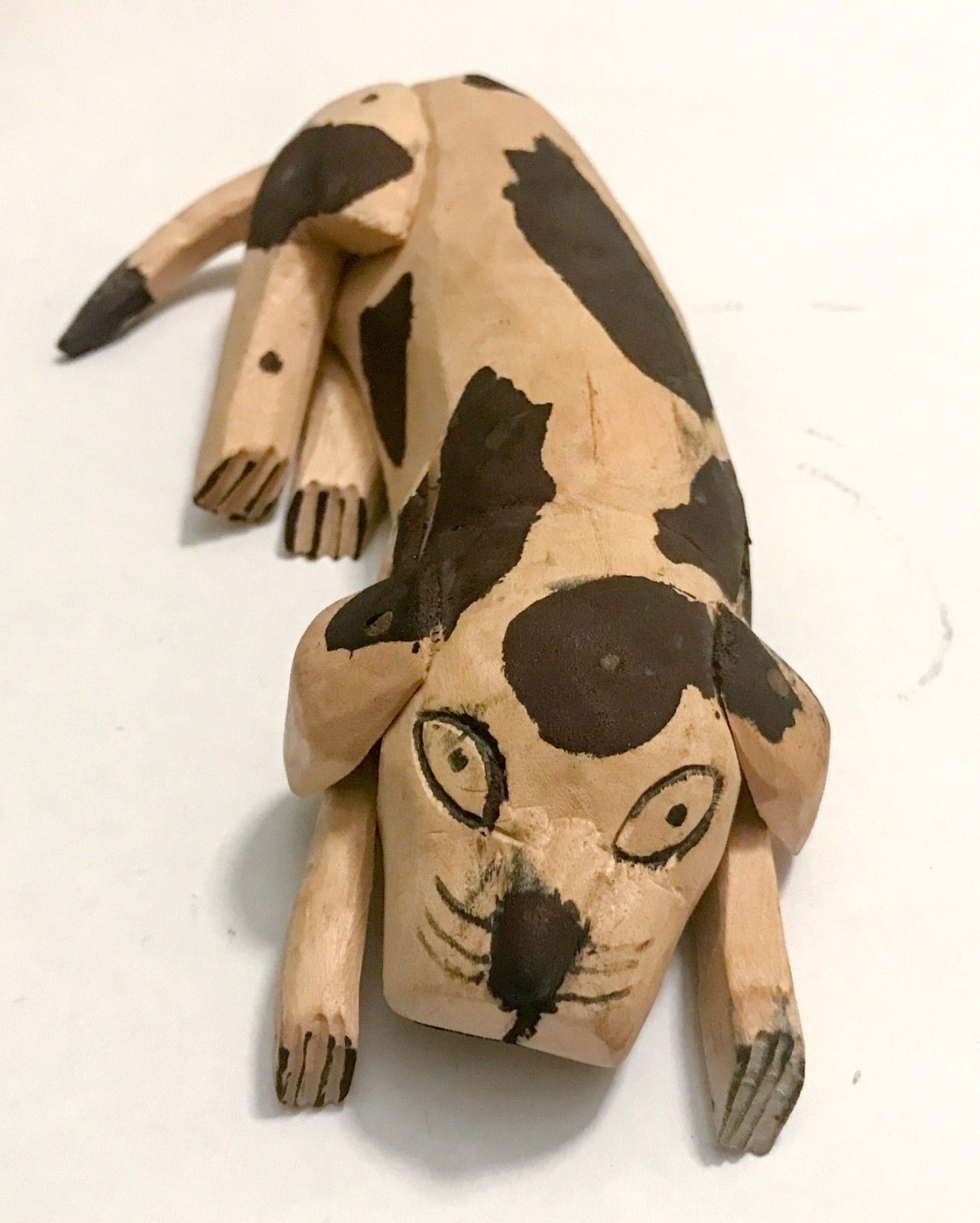 Vintage Mexican sleeping dog hand carved-painted in woodÂ