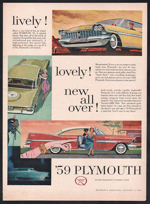 Title (ebay affiliate link): Original 1959 Canadian Plymouth ad red Fury 2-door Hardtop Canada