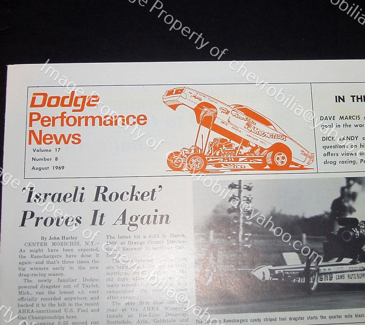 August 1969 DODGE PERFORMANCE NEWS Coronet CHARGER Super Bee SCAT PACK Six Pack