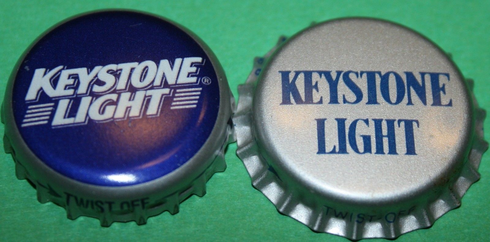 Title (ebay affiliate link): 2 DIFF COORS BREWING CO; KEYSTONE LIGHT; PLASTIC LINED BEER BOTTLE CAPS; CCSI