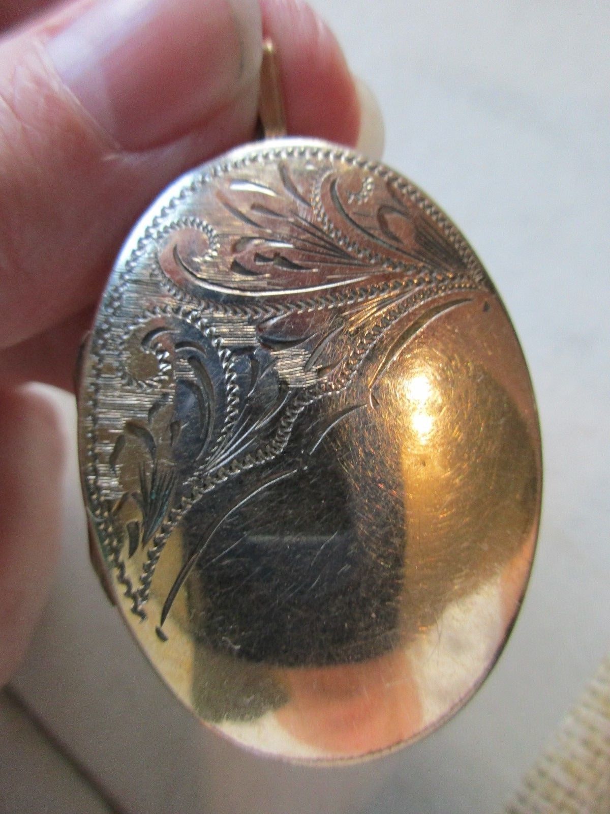ANTIQUE VINTAGE ART NOUVEAU DECO LARGE GOLD F PHOTO LOCKET FOB PENDANT NECKLACE