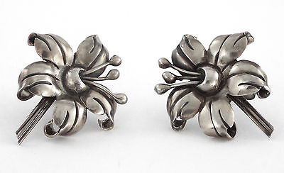 * 1920-40s MEXICO - RARE LARGE ANTIQUE STERLING SILVER FLOWERS EARRINGS