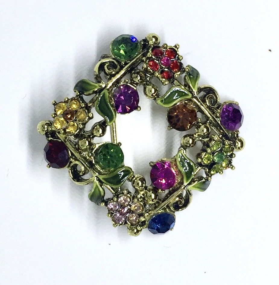 Title (ebay affiliate link): Vintage Jewel Tone Rhinestone Brooch in Antique Gold Tone Setting