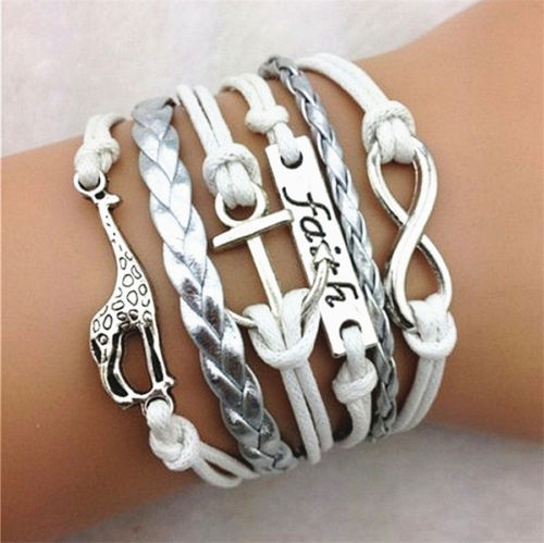 Lucky Anchors Giraffe Antique Silver Silver Leather Friendship Bracelet A01