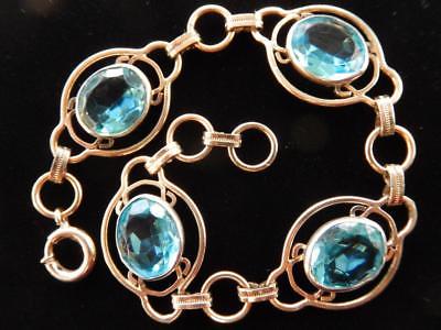 Antique BLUE Crystal PANEL BRACELET Yellow GF Art Deco 7 1/4" Faceted Excellent