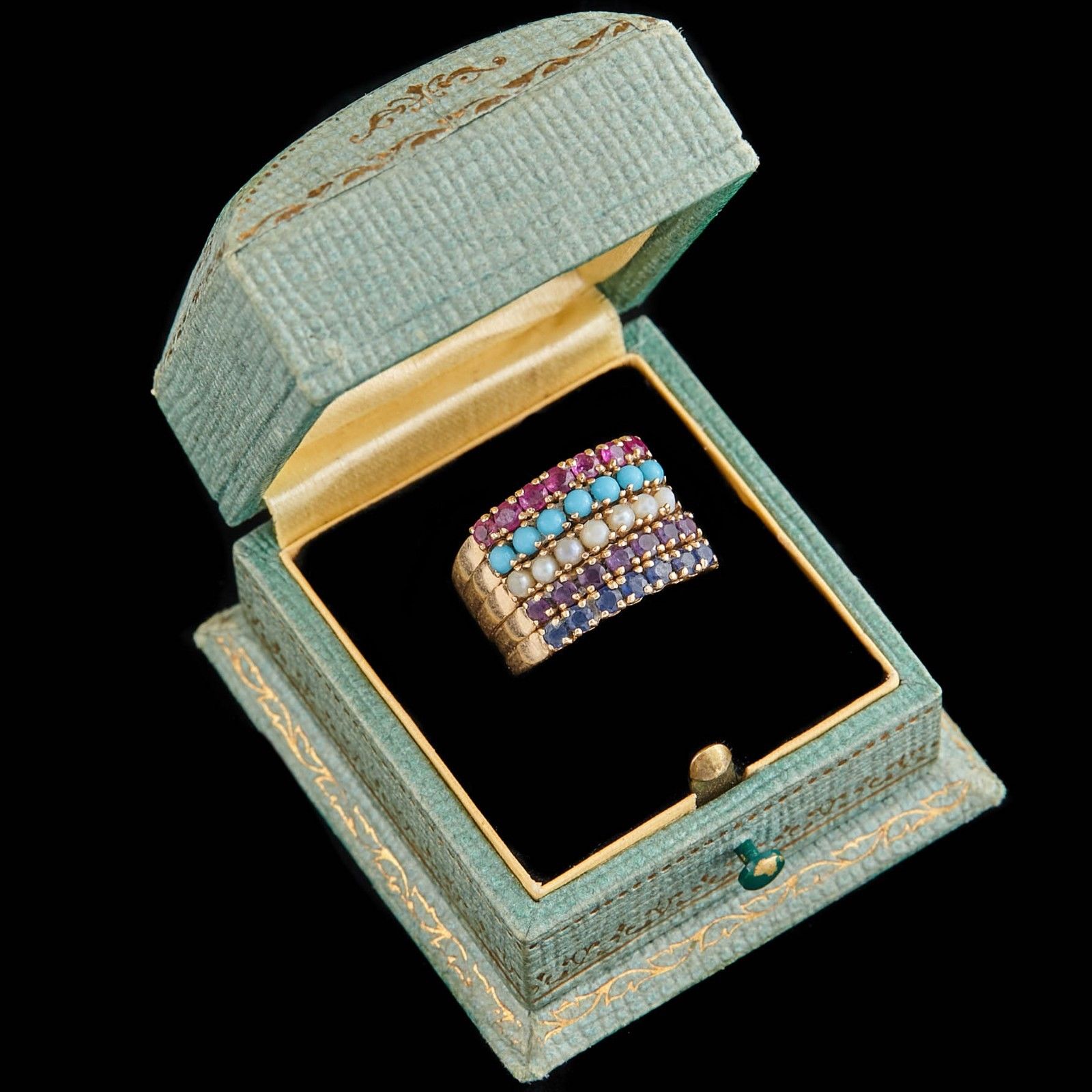 Title (ebay affiliate link): Antique Vintage Nouveau 14k Gold Sapphire Ruby Amethyst Stacking Band Ring S5.25