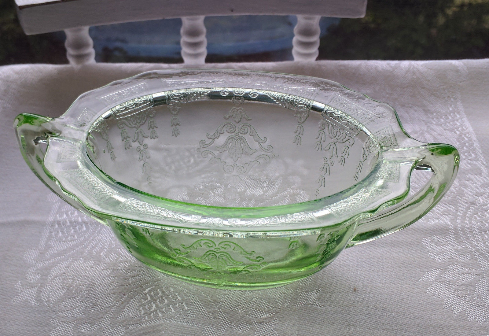 Green Princess Pattern Depression Glass Sugar Container without Lid