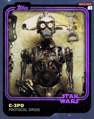 Title (ebay affiliate link): DIGITAL Star Wars Card Trader C-3PO Rare 222cc 2015 PROTOCOL Purple Base Variant