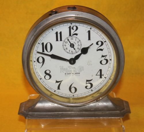 Title (ebay affiliate link): vintage The National Call 8 Day ALARM CLOCK - Antique pedestal Bed Side clock