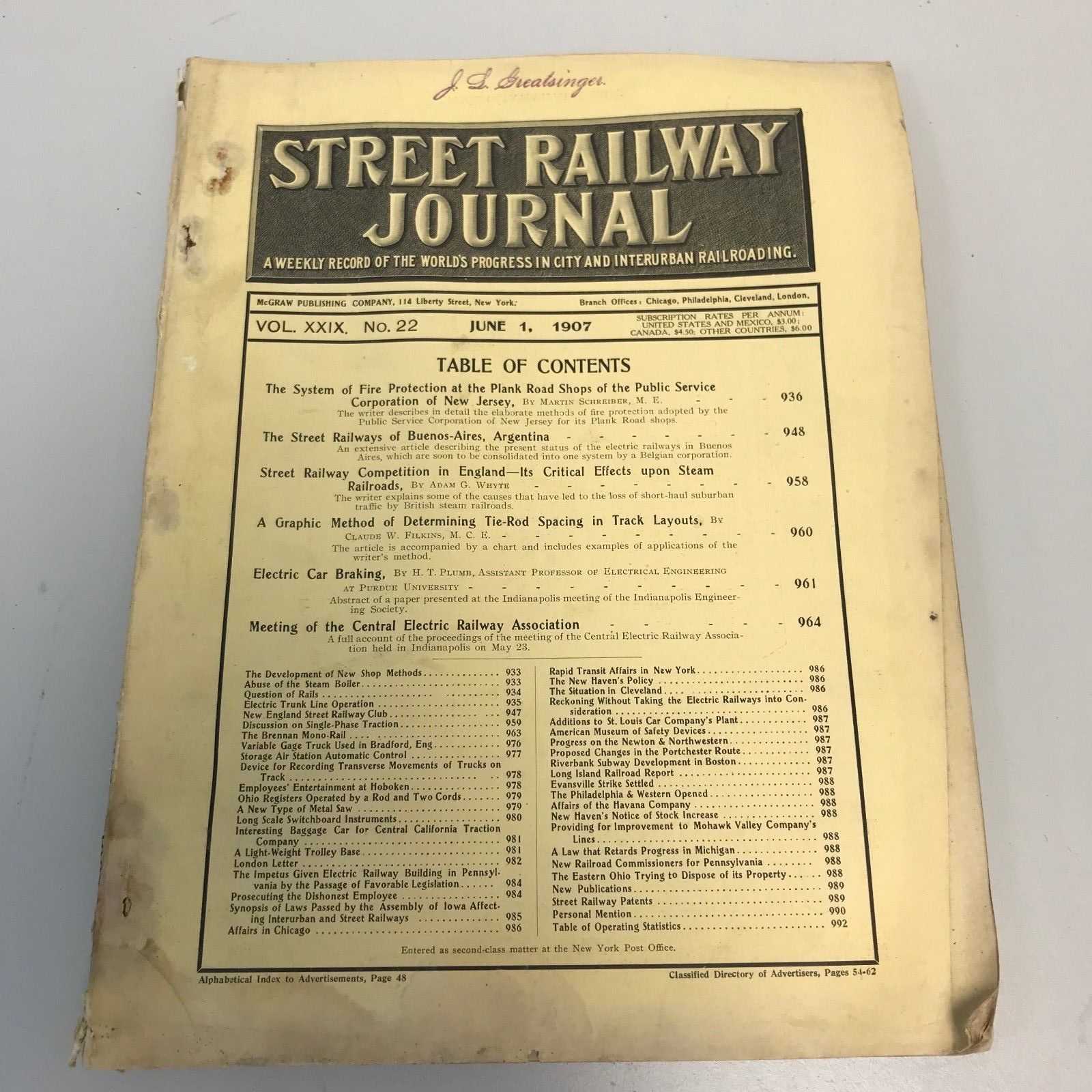 ORIGINAL ISSUE Old JUNE 1st 1907 STREET RAILWAY JOURNAL Railroad