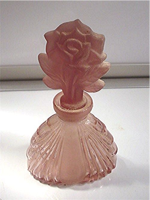 PINK GLASS PERFUME BOTTLE W/ ROSE EMBOSSED GROUND STOPPER