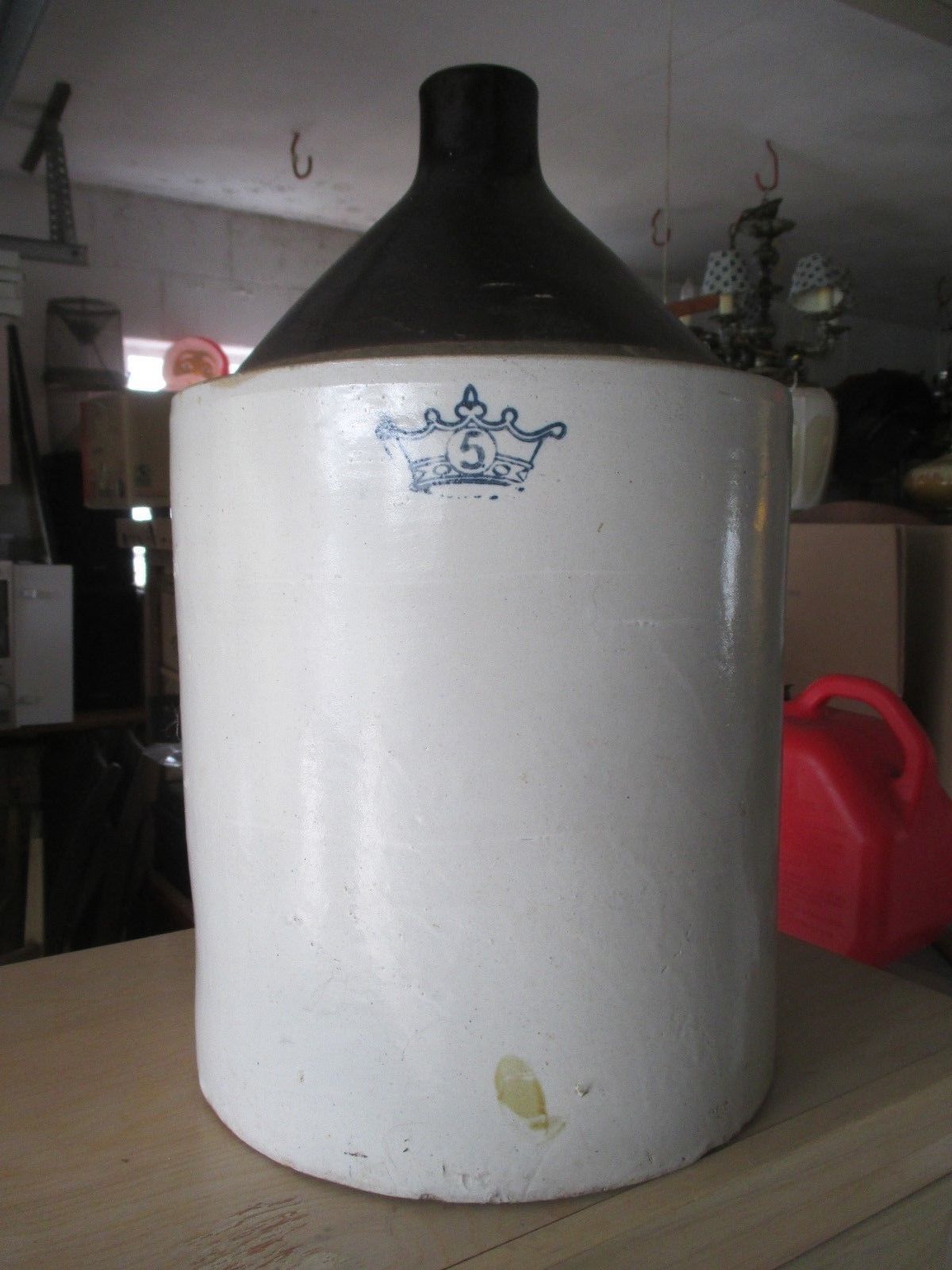 Title (ebay affiliate link): VINTAGE 5 GALLON SHOULDER JUG POTTERY STONEWARE CROCK Ransbottom? $5 NR