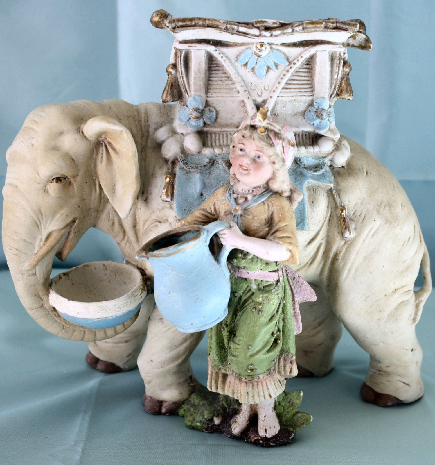 Antique Carl Schneider German Bisque Elephant/Girl/Figurine/Vase