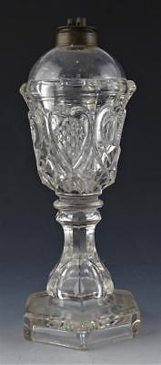 RARE BOSTON SANDWICH GLASS WAFFLE HEART FONT DOUBLE BURNER WHALE OIL LAMP c1830!