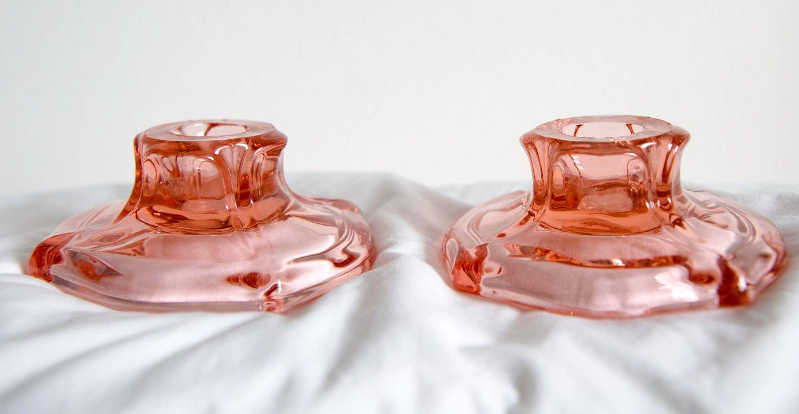 Title (ebay affiliate link): Vintage Pink Depression Era Glass glass taper candle holders (2)