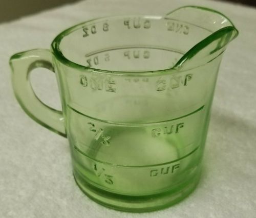Title (ebay affiliate link): VINTAGE Green Depression Measuring Cup With Pour Spout 1 Cup 3" Tall Thick Glass