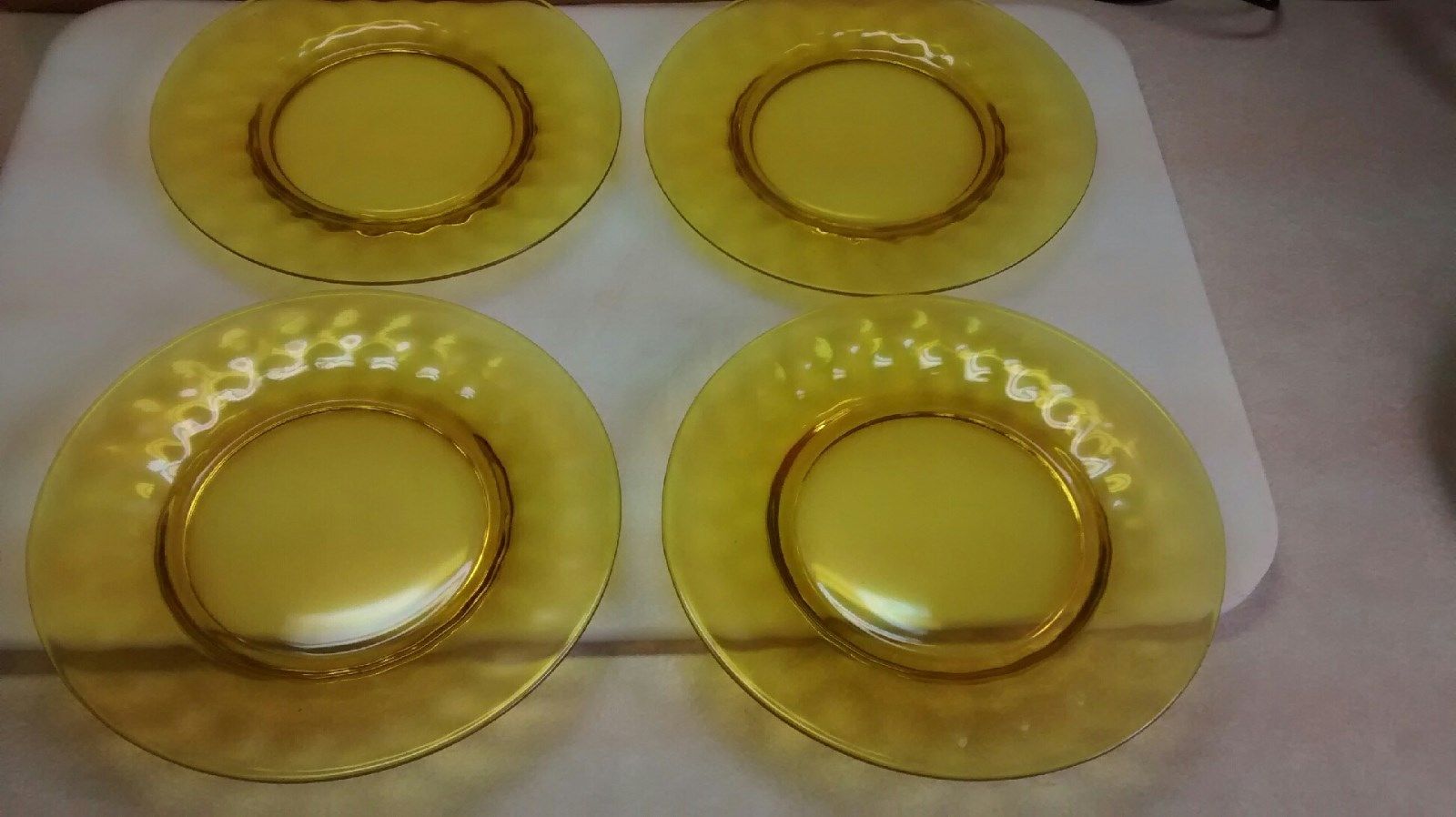 Title (ebay affiliate link): Depression Glass amber Saucer Bubble Design 7 1/8 dia. set of 4