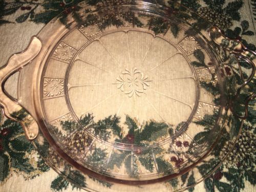 Pink Carnival Glass Two Handled Platter