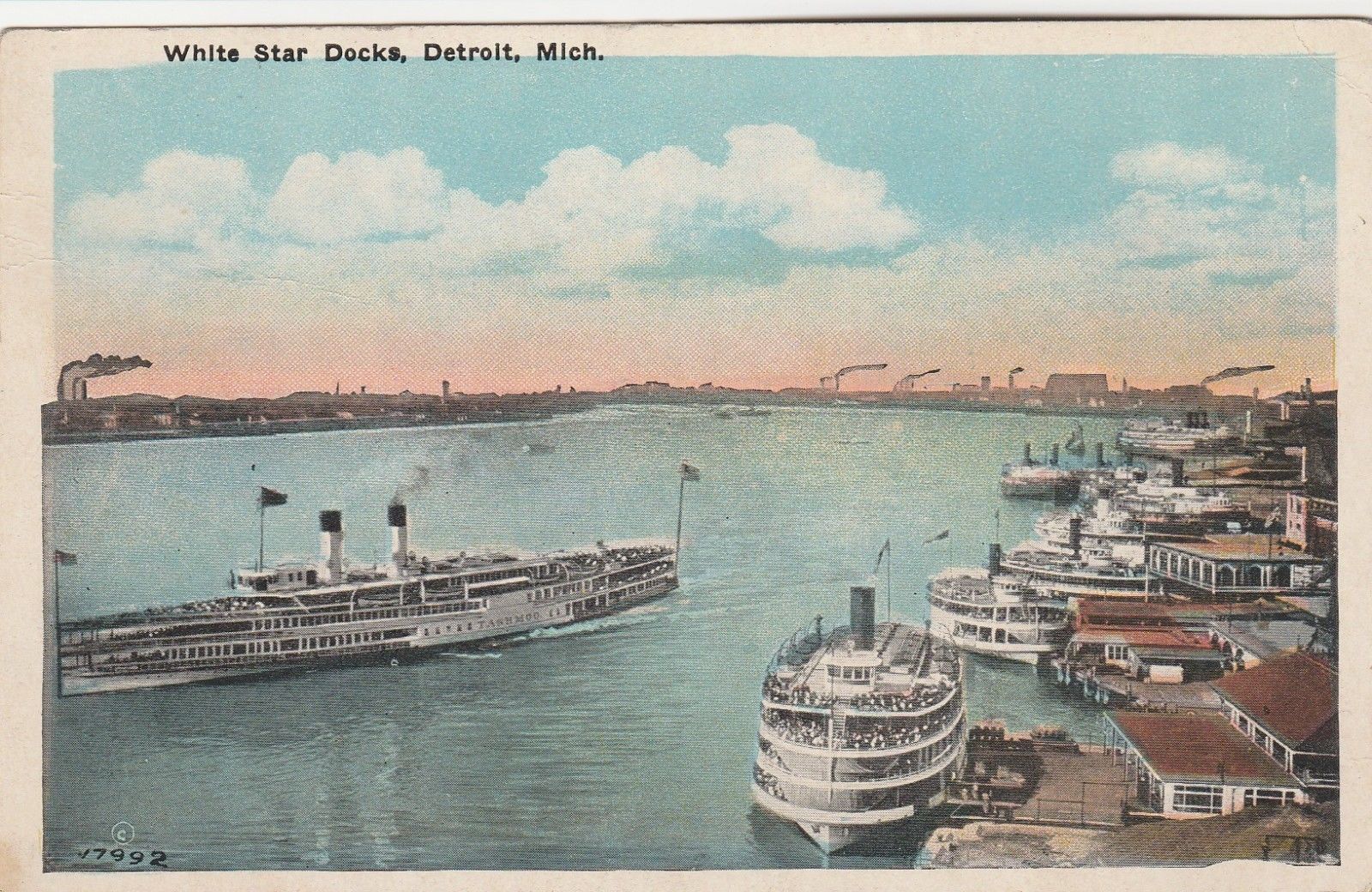 EARLY POSTCARD~WHITE STAR DOCKS~DETROIT ,MI~STEAMSHIPS
