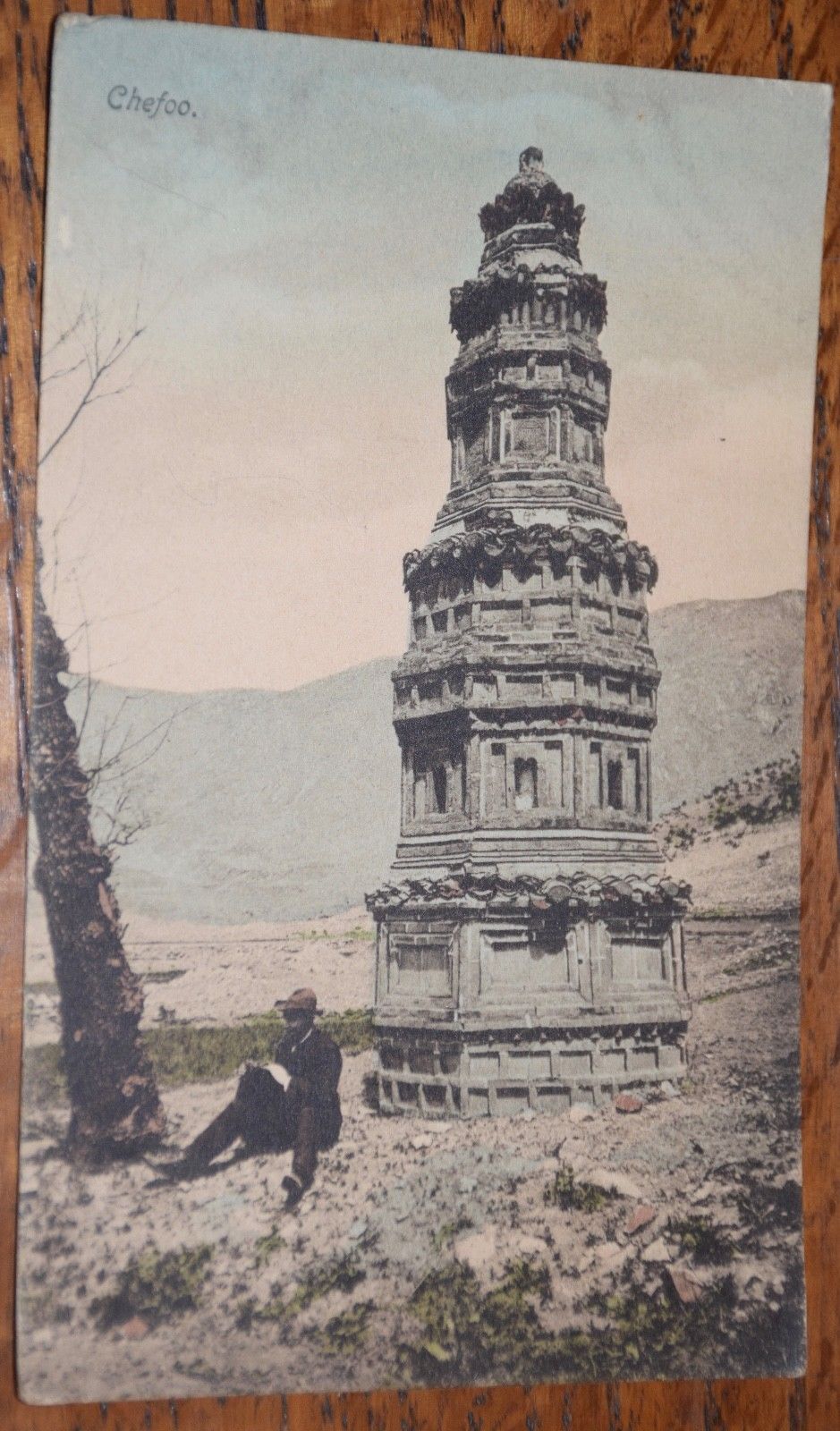 Early Hand Colored Chefoo Monument Vintage China Chinese Postcard