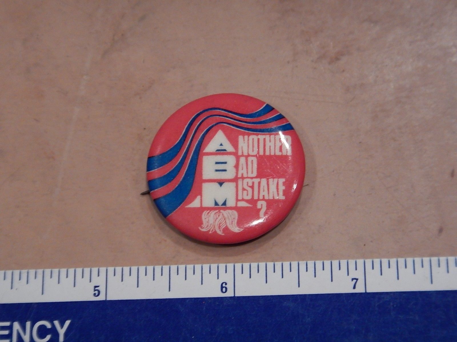 ORIGINAL ABM "ANOTHER BAD MISTAKE" ANTI VIETNAM WAR PROTEST PIN BACK BUTTON