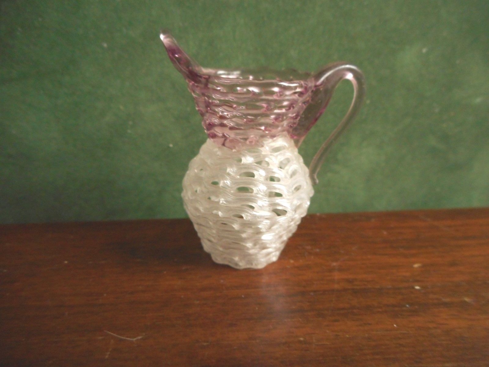 Vintage Glass Hand Blown Vase Dollhouse 1:12 Filgree Clear Purple Top & Handle
