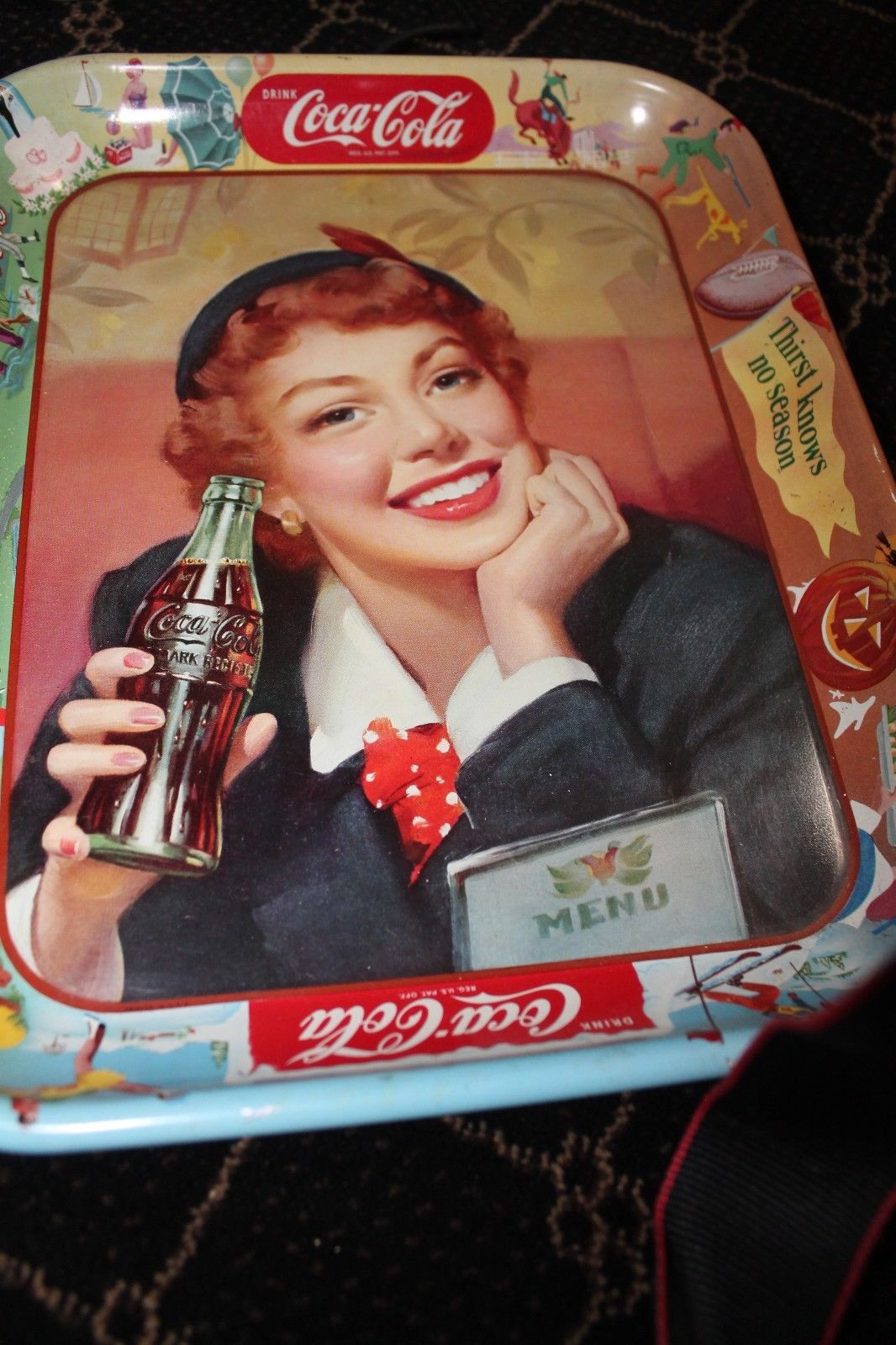 Title (ebay affiliate link): Vintage Coca Cola Soda Advertising Serving Tray Halloween Seasons Pin-Up Girl
