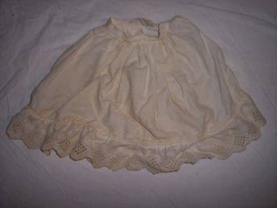 ANTIQUE VICTORIAN DOLL BABY WHITE COTTON SKIRT W/LACE