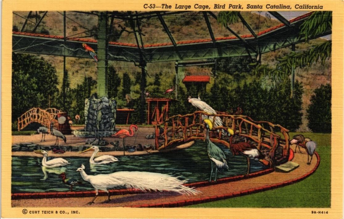 Title (ebay affiliate link): DR JIM STAMPS US LINEN POSTCARD BIRD PARK LARGE CAGE SANTA CATALINA CALIFORNIA