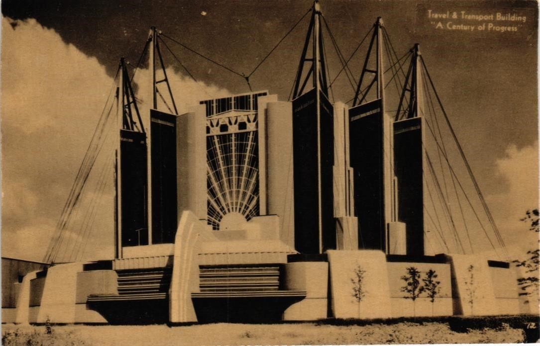 DR JIM STAMPS US POSTCARD TRAVEL AND TRANSPORT BUILDING CHICAGO EXPO 1933