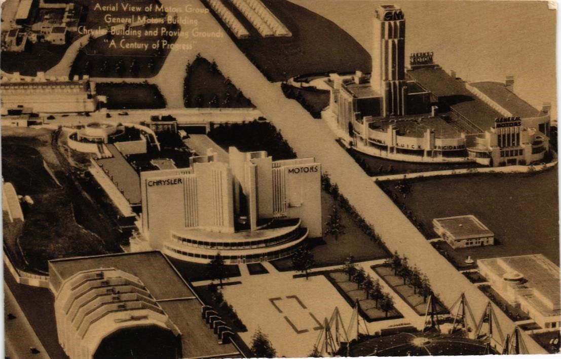 DR JIM STAMPS US AERIAL VIEW OF MOTORS GROUP CENTURY OF PROGRESS POSTCARD