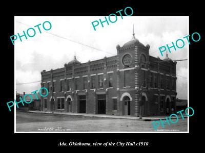 OLD LARGE HISTORIC PHOTO OF ADA OKLAHOMA, VIEW OF CITY HALL BUILDING c1910
