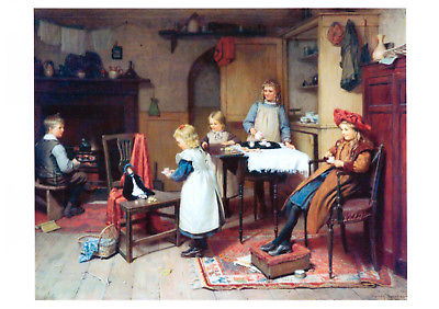 Title (ebay affiliate link): KIDS ART ~ LITTLE GIRLS & BOY play toys Doll Tea Party Time MODERN Postcard