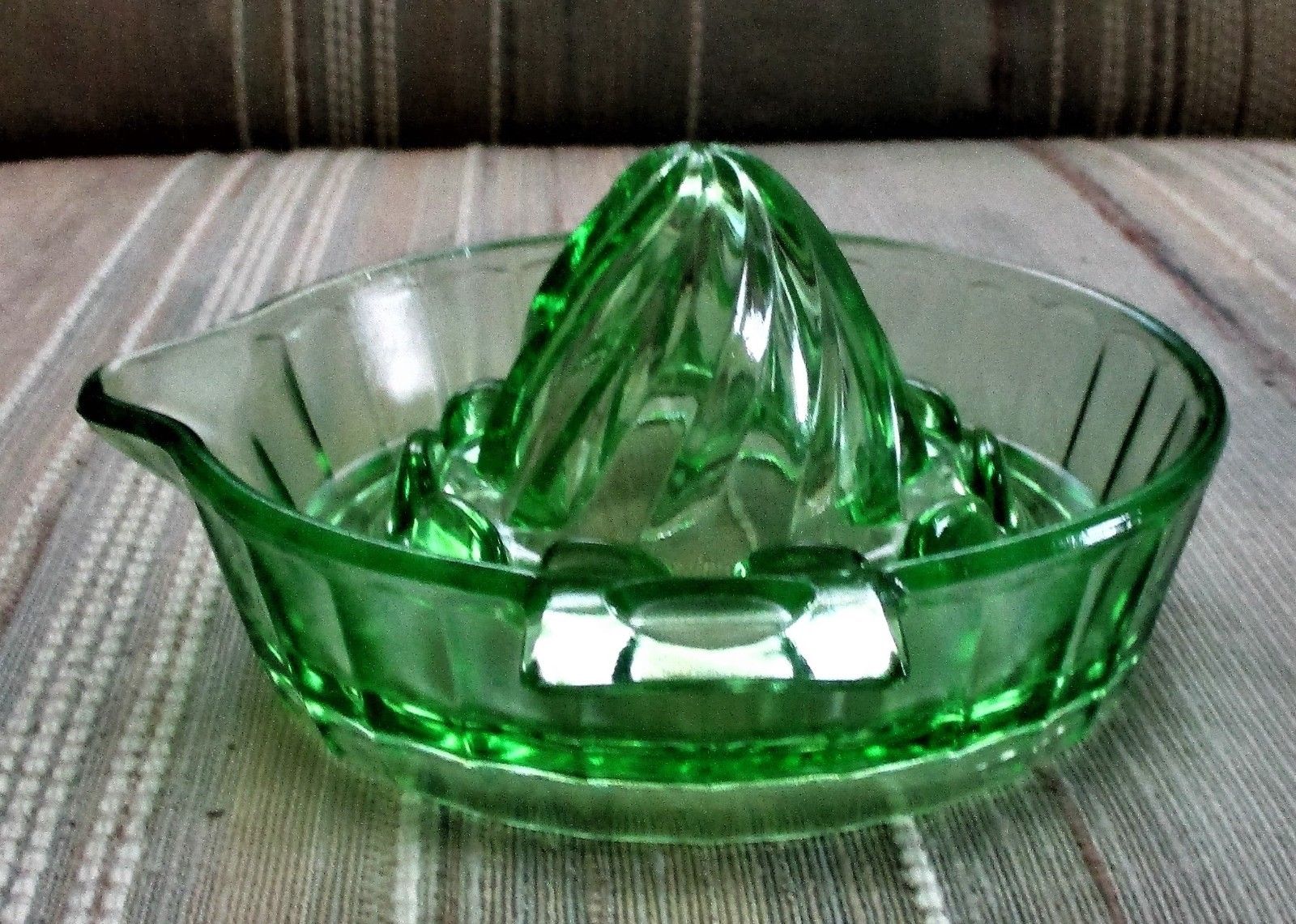 Title (ebay affiliate link): Green Uranium Glass, depression Glass Lemon, lime Juicer Reamer Tab Handle