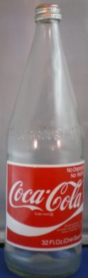 Older 32oz Painted Label Emboss Print Glass Bottle #66