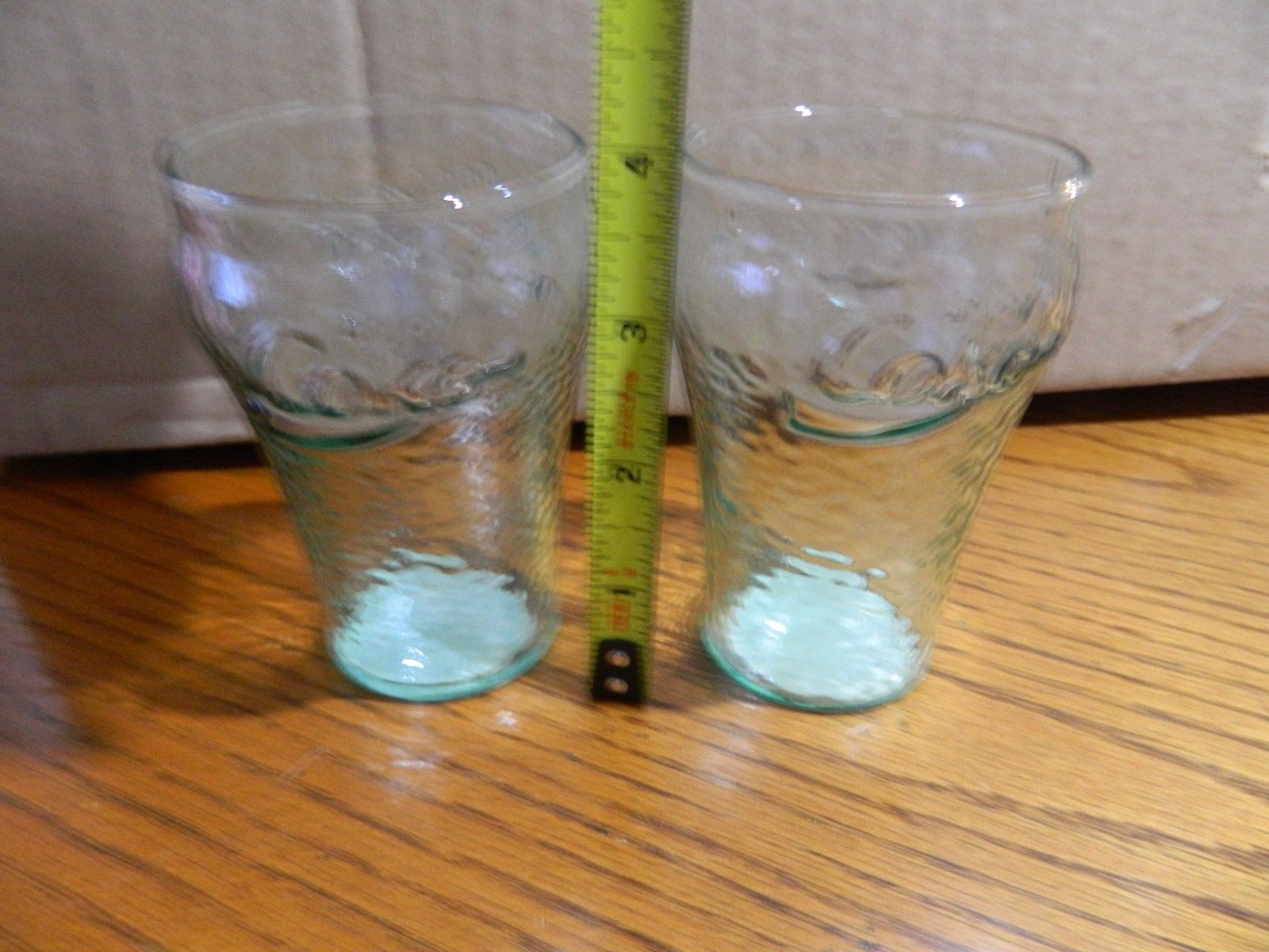 Title (ebay affiliate link): (2) MINI COCA-COLA COKE small green juice glasses 4" pebbled mottled glass